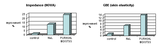 在本試驗中顯示PURASAL® MOISTXS 也顯著降低了經表皮的水分流失