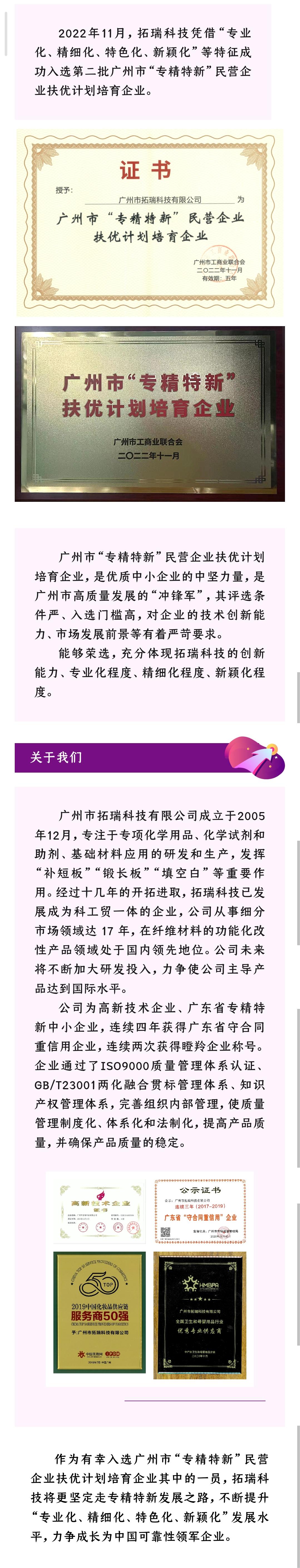拓瑞科技入選廣州市“專精特新”民營企業(yè)扶優(yōu)計劃培育企業(yè)