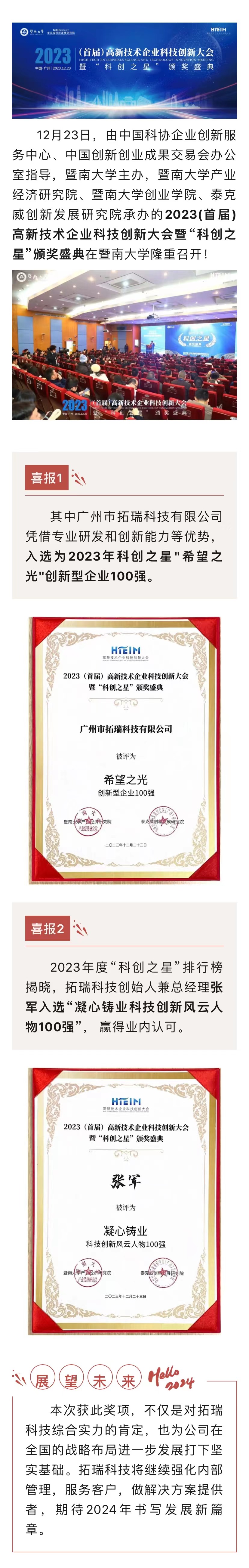 喜報|拓瑞科技榮獲2023年科創(chuàng)之星"希望之光"創(chuàng)新型企業(yè)100強(qiáng)